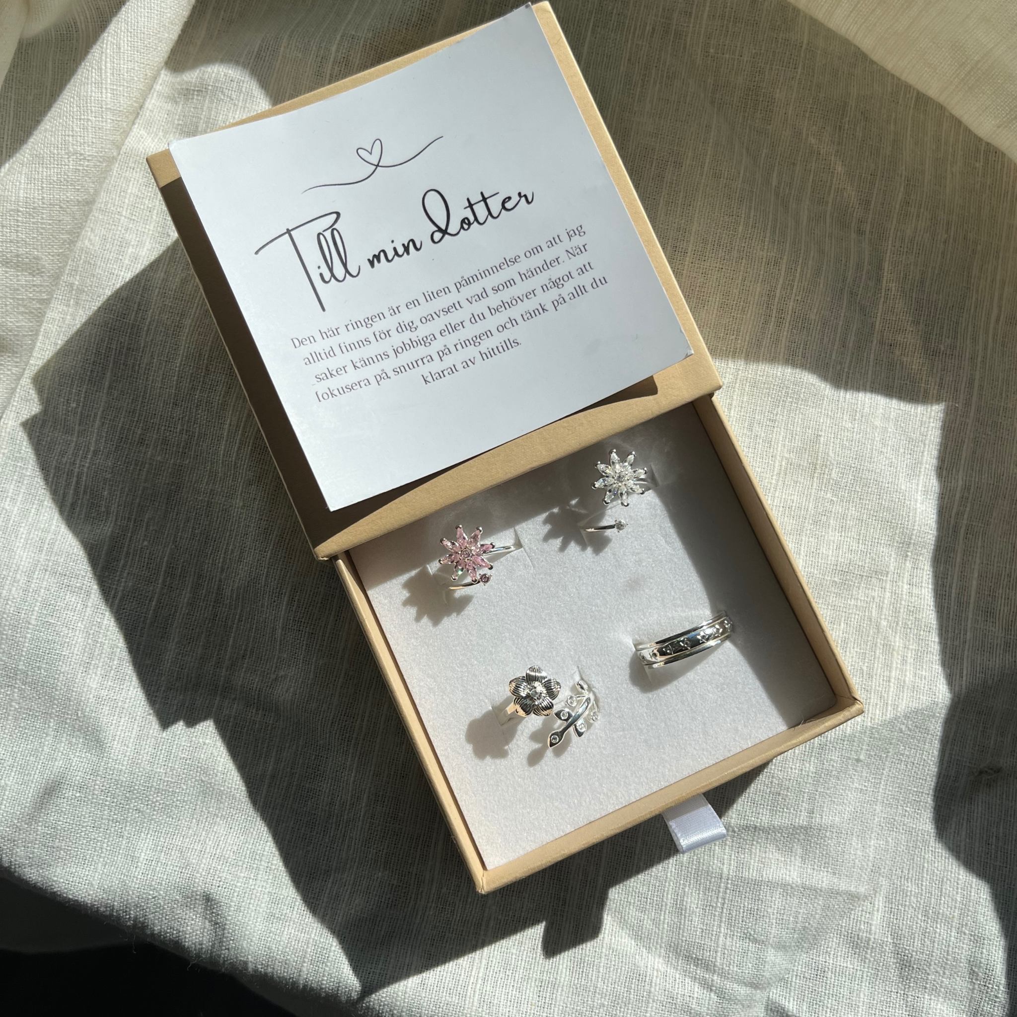 Our fidget rings are designed for mindfulness and everyday comfort. We feature a 360-degree spinner element that engages your hands in sensory stimulation that helps with focus.